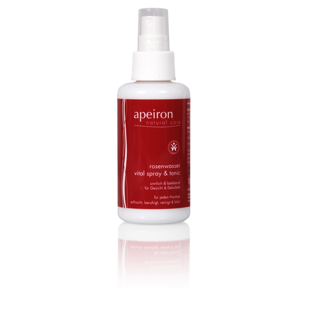 Als tonisierende Pflege – Rosenwasser Vital Spray & Tonic auf einen Wattepad sprühen und Gesicht und Dekolleté nach der Reinigung sanft abtupfen.