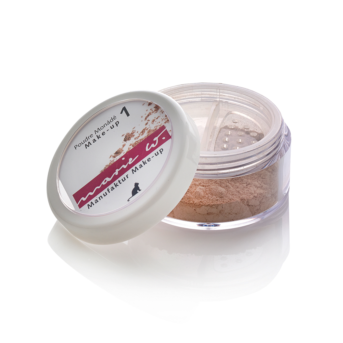 Eine ganz kleine Menge Puder (ca. 1 knappe Messerspitze) in das marie.w Puderschälchen streuen.