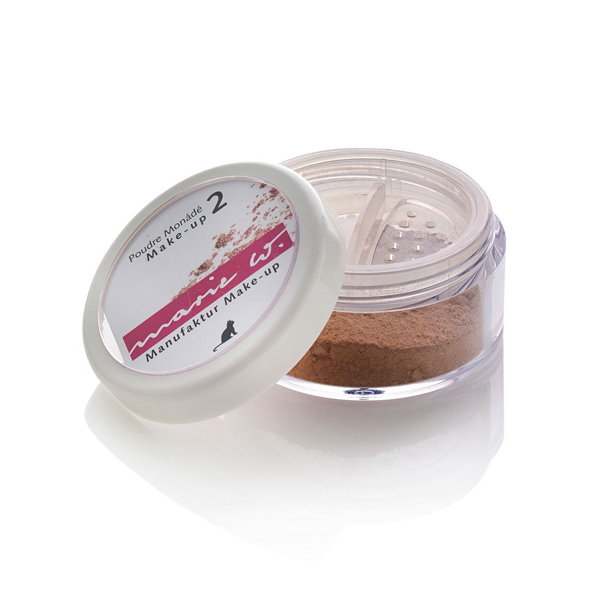 2. Eine ganz kleine Menge Puder (ca. 1 knappe Messerspitze) in das marie.w Puderschälchen streuen.