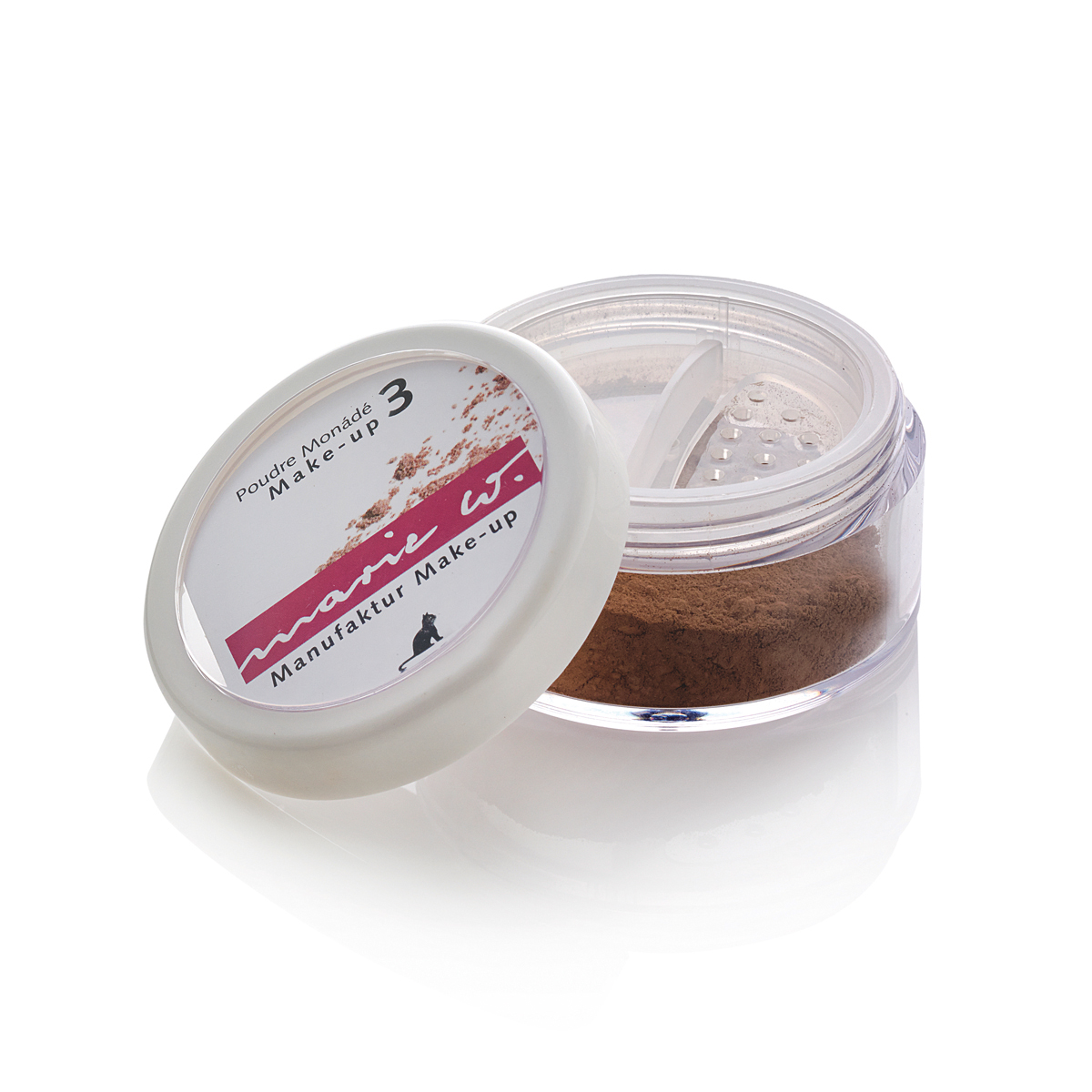 2. Eine ganz kleine Menge Puder (ca. 1 knappe Messerspitze) in das marie.w Puderschälchen streuen.